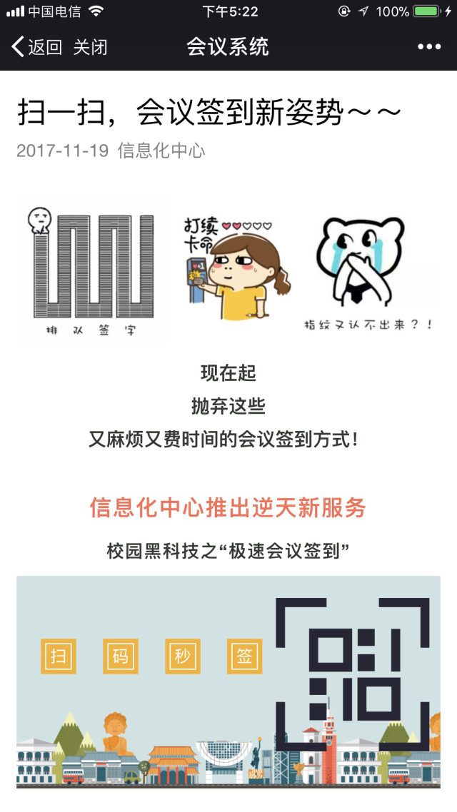 信息化建设与管理中心主办的会议,每次都身体力行使用会议系统进行“会议申请”和“扫码签到”,发布会也不例外。